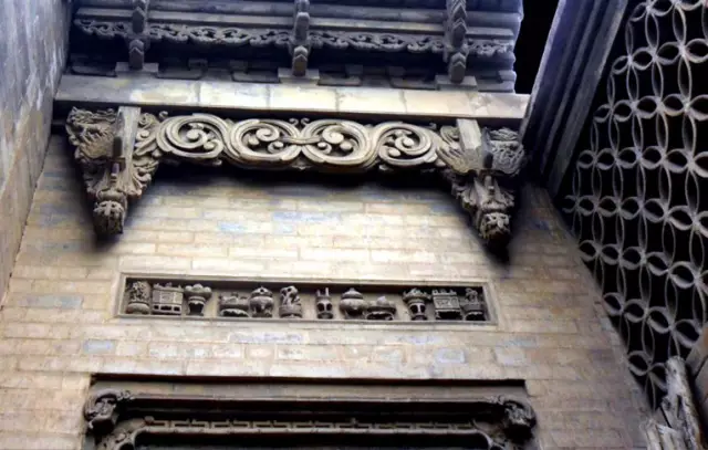 砖雕在民居中的大量运用又与晋商的崛起密切相关。经济富裕后的晋商竞相显贵夸富,兴起讲究建房规模和雕刻装饰,使得原来只用在宫廷、庙宇等建筑之上的砖雕进入民居。砖雕装饰大都采用民间喜闻乐见的形式,用借代、隐喻、比拟、谐音等手法传达吉祥寓意,表达人们对生命价值的关注、对家族兴旺的企盼、对富裕美满生活的向往、对自身社会地位的追求。民间工匠将这种具有丰富文化内涵与寓意深刻的美好祝愿赋予了丰富的想象力,将其绘出图案来,然后再按照图案与工艺程序进行制作。