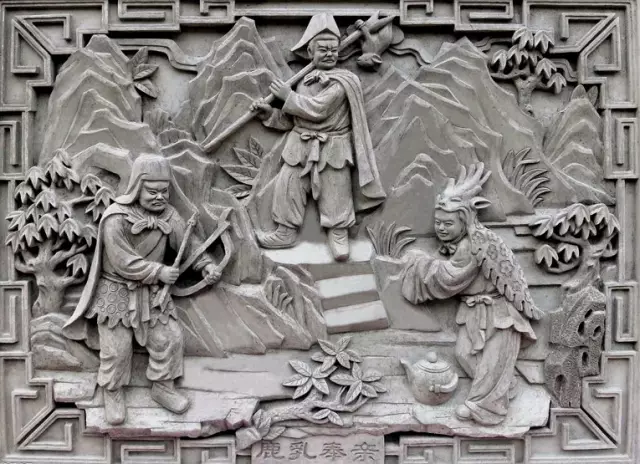 砖雕指在青砖上雕出山水、花卉、人物等图案,是古建筑雕刻中很重要的一种艺术形式。