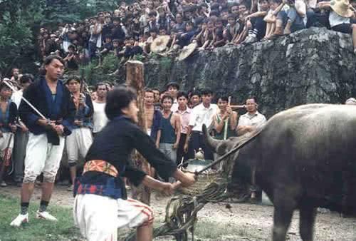 在南丹县八圩、里湖瑶族乡等地聚居着瑶族的一个支系——白裤瑶,因白裤瑶至今沿袭着古老的生活习俗,有着“人类文明活化石”之称,特别是丧葬文化中的“砍牛”仪式,更是充满着神秘色彩。