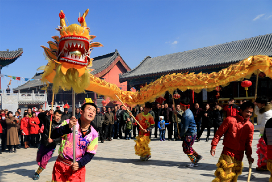 届时在庙里还要敬龙牌及各路神仙,并且唱大戏、逛九曲、垒旺火,家家户户请亲待客、邀朋会友,共享“二月二”盛会的欢乐,一同祈求“龙王爷”保佑五谷丰登、人丁兴旺,流露出人们对龙的无限崇敬和虔诚的信仰。