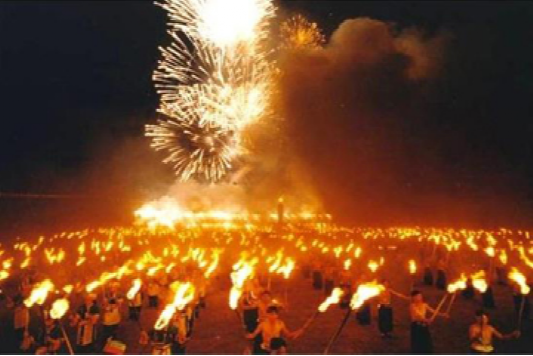 关于火把节的传说较多,有纪念汉代酋长曼阿南之妻阿南夫人殉夫之事;有三国时群众欢送诸葛亮南征得胜回成都之事;有南诏王皮罗阁“火烧松明楼”,柏节夫人殉节之事;还有纪念五谷之神“达拨”,祈求五谷丰登,六畜兴旺之意。