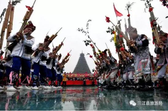 多耶广场表演芦笙踩堂舞(梁克川摄)