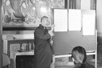 10月20日,更登达吉在绘画唐卡体验活动中。张式宜摄