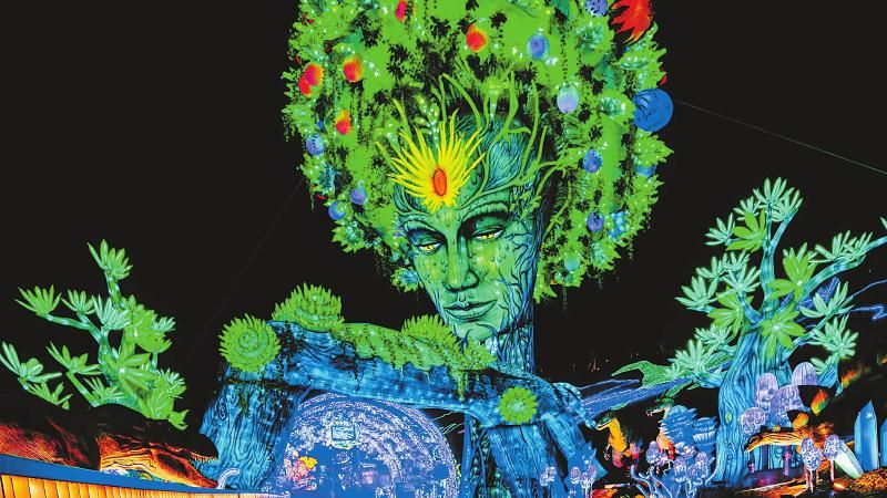 2月22日晚,第27届自贡国际恐龙灯会从“云”上转为线下,在中华彩灯大世界璀璨绽放。