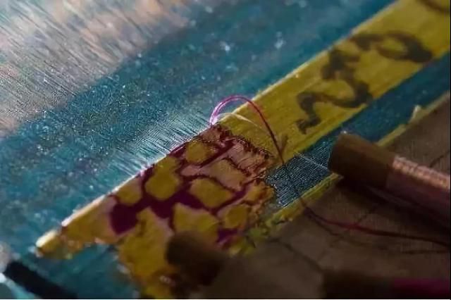 接头:织造蜀锦时,丝线会根据天气的变化热胀冷缩,或织造时成千上万次自然摩擦产生丝线疲劳断裂。在遇到经线断裂的情况时,织工就要在让人眼花缭乱的上万根线中找出断掉的丝线并运用所学到的打结技能将其接上