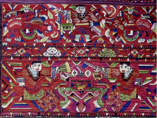 贵州施洞苗族刺绣种类繁多,刺绣手法有平绣、绉绣、绞绣、破线绣、锁绣、打子和布贴等多种。手工技艺还涉及剪纸、织锦等多种工艺。苗族刺绣的图纹造型非常的丰富而多彩,施洞主要以苗族破线绣最为珍贵,具有极高的研究价值和开发价值。
