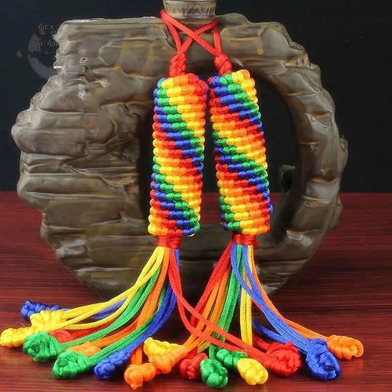 绳结技艺最初起源于农牧民的生产生活,可见于日常生活中的迁徙运输、家居服饰等,曾一度是人们生产生活中必不可少的生活技艺。早在远古时代,人们就采用结绳这一方法来记事,根据古书记载,那时的人类没有记事工具,但为了不遗忘事情,就有了结绳这一方法,大事便大结其绳,小事则小结其绳,可见在远古时,“结”就被先民们赋予了不同的意义。