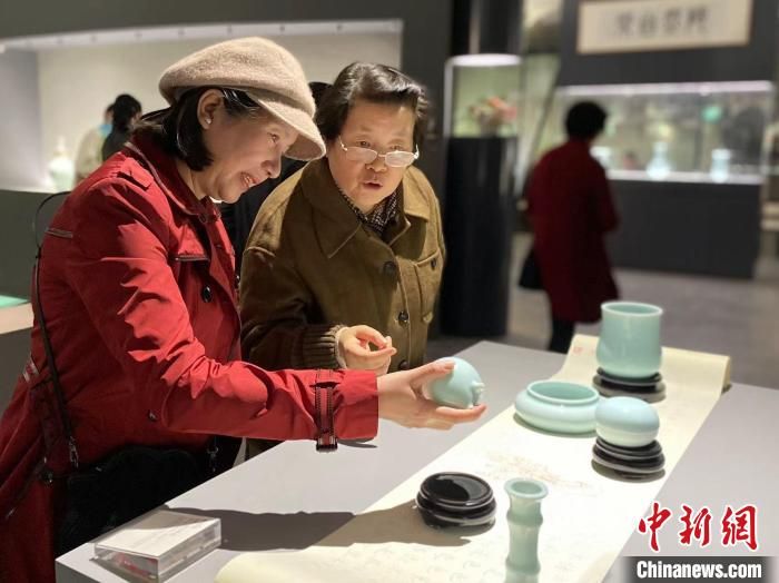 参观者观赏青瓷作品。 钱晨菲 摄