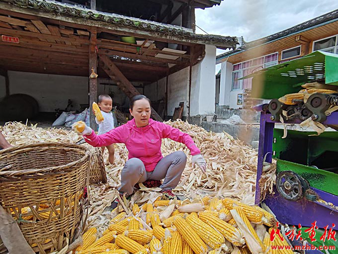 何永群在金江镇民宿晾晒刚采摘的山楂果。