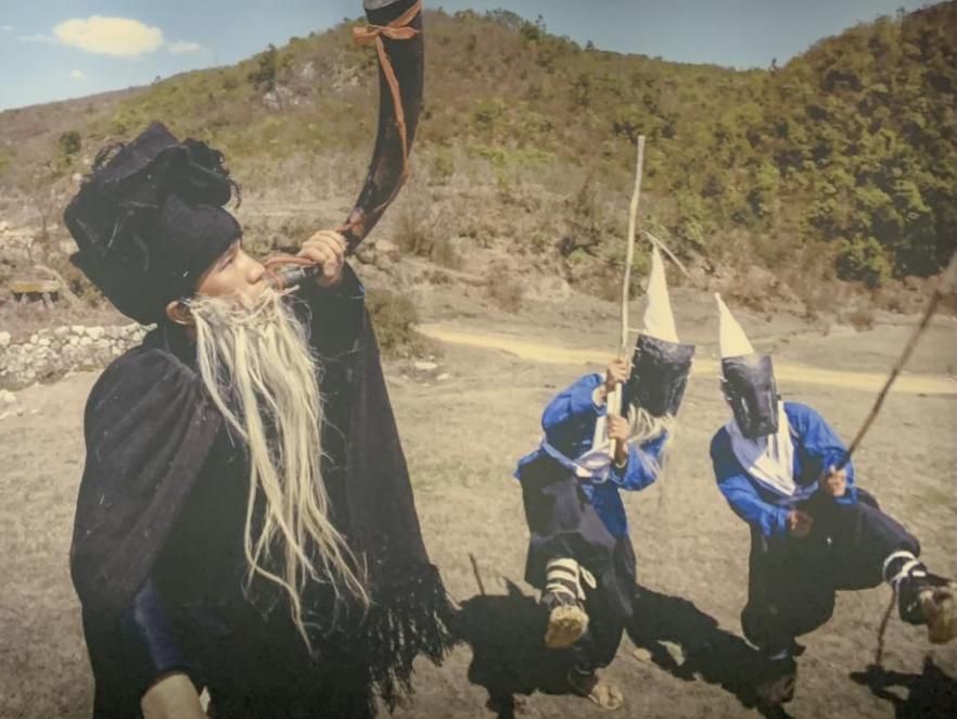 彝族男子正在进行祭祀活动(许觊佳摄于贵州省博物馆)