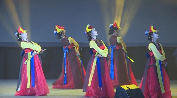 关于刀舞的由来,也有一段令人神往的传说。新罗国有位名叫黄昌郎的壮士,7岁的时候就能挥舞长剑表演,气势如虹。他一人来到百济市舞剑,观众围得里三层外三层,深深为他的剑术所吸引。百济王听说以后,召黄昌郎入宫表演。黄昌郎借舞剑之机,刺杀百济王,结果最终被人杀害。新罗国的人民为了缅怀黄昌郎的义举,面带假面具,手持折半的刀,照他从前表演的舞姿跳舞。刀舞于是由此而来。刀舞与剑舞一样,雄壮、勇猛、跃动的舞姿贯穿舞蹈的全过程。刀舞有很强的随意性,没有统一的套路,舞者的基本动作合着打击乐节奏可随意发挥。舞蹈反映了朝鲜族人民勇敢、大胆、智慧、乐观的民族气概。舞蹈姿势刚柔相济,激舒并存,急缓相容,像疾风般的向前冲,左右猛刺,轻快猛移等动作,“喀嚓”、“喀嚓”的挥刀声以及浪漫的舞态,给人以强烈的号召感,体现了朝鲜族舞蹈的高超技艺。