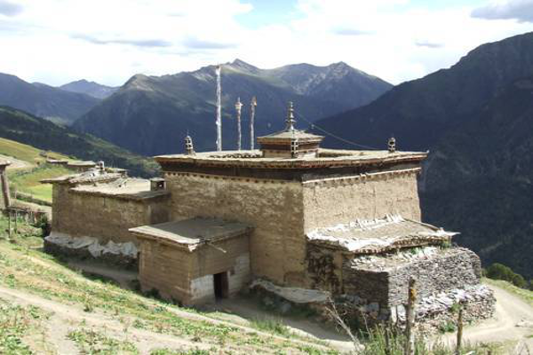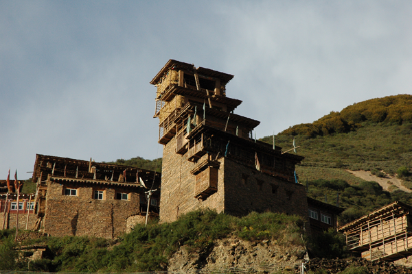 碉房是藏族很具代表性的民居之一,多为石木结构,外形端庄稳固,风格古朴粗犷。碉房一般有三到四层。底层养牲口和堆放饲料、杂物;二层布置卧室、厨房等;三层设有经堂。由于藏族信仰藏传佛教,诵经拜佛的经堂占有重要位置,神位上方不能住人或堆放杂物,所以都设在房屋的顶层。为了扩大室内空间,二层常挑出墙外,轻巧的挑楼与厚重的石砌墙体形成鲜明的对比,建筑外形因此富于变化。