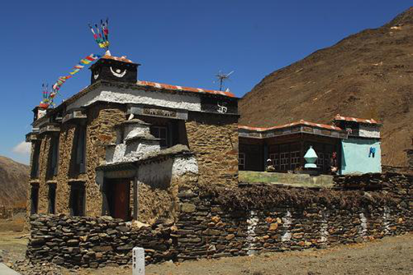 藏族主要分布在西藏、青海、甘肃及四川西部一带,为了适应青藏高原上的气候和环境,传统藏族民居大多采用石构,形如碉堡,所以被称为“碉房”。