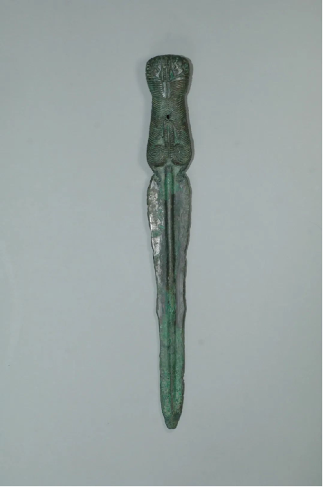 第四,夏家店上层文化中大量的游牧和骑马民族文化因素,应是晚商以来,伏尔加河流域的塞伊玛文化经南西伯利亚、外贝加尔地区的卡拉苏克文化和塔加尔文化到达蒙古高原和中国北方长城地带,形成诸青铜文化,继而进一步向东方推进,抵达夏家店上层文化。其中受长城地带柄身连铸匕首式短剑影响,形成夏家店上层的銎柄直刃剑,各种动物雕塑形象也被吸收借鉴,在夏家店上层广泛流行开来。
