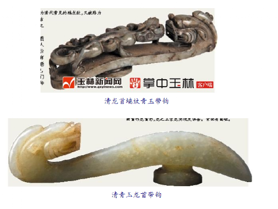 另外,从目前所掌握的资料来看,广西各地出土的带钩数量相对较少,各地文博馆所收藏的带钩文物,大多集中在明清时期,且多为传世品。就玉林地区而言,目前在玉林的各级公藏机构中,仅只收藏有清代的玉质带钩,数量不多,但部分却十分精美。下面我们就选择其中的两件,为大家做一介绍,以飨读者。