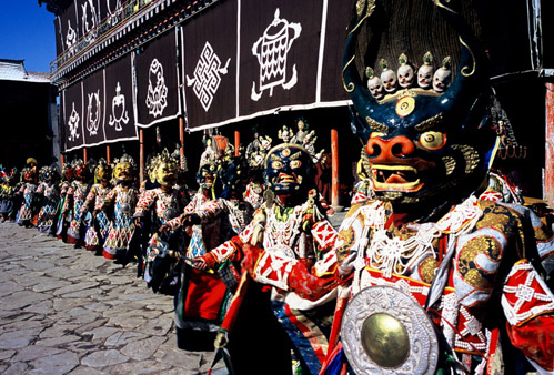 扎什伦布寺的“色莫钦姆羌姆”对于表演者要求很高,要身体强壮、五官端正,同时精通佛教教规。表演时,演员被要求装扮哪一位神,就要成为神的化身,口中念诵咒语,心中始终不离神的形象。因此,挑选羌姆继承人都要从有悟性、有舞蹈感觉的年轻僧人中选拔。