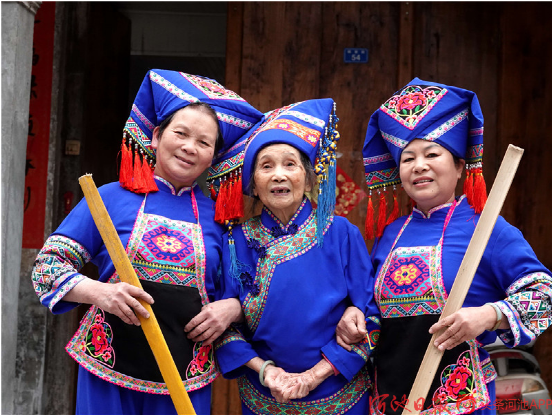 都安县500名群众欢聚一堂,打起扁担,喜迎“三月三”。