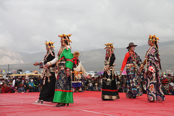 藏族人喜欢珠光宝气的配饰,普遍用珠宝、金银、玉器等配饰物装扮自己,并将其看作是财富和美的象征。藏族的配饰物很多,从头到颈、耳、胸、腰、腕、指、腿、脚都有。