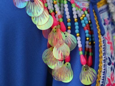 苗族女子对襟刺绣上衣-衣领侧面绣花及装饰